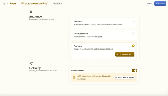 - Choose which posts are free and which are for paying readers